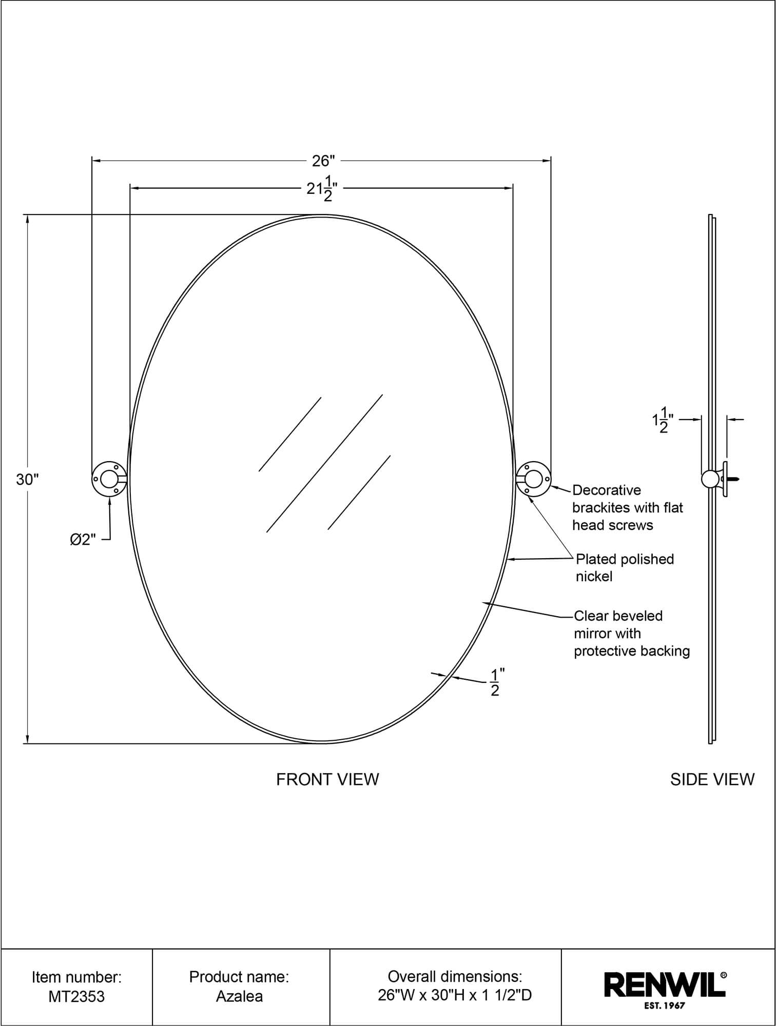 Style: MT2353 | Dimensions : 26″W X 30″H X 1.5″D