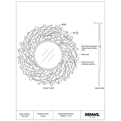 Style: MT1134 | Dimensions : DIA-38″ X 1″D