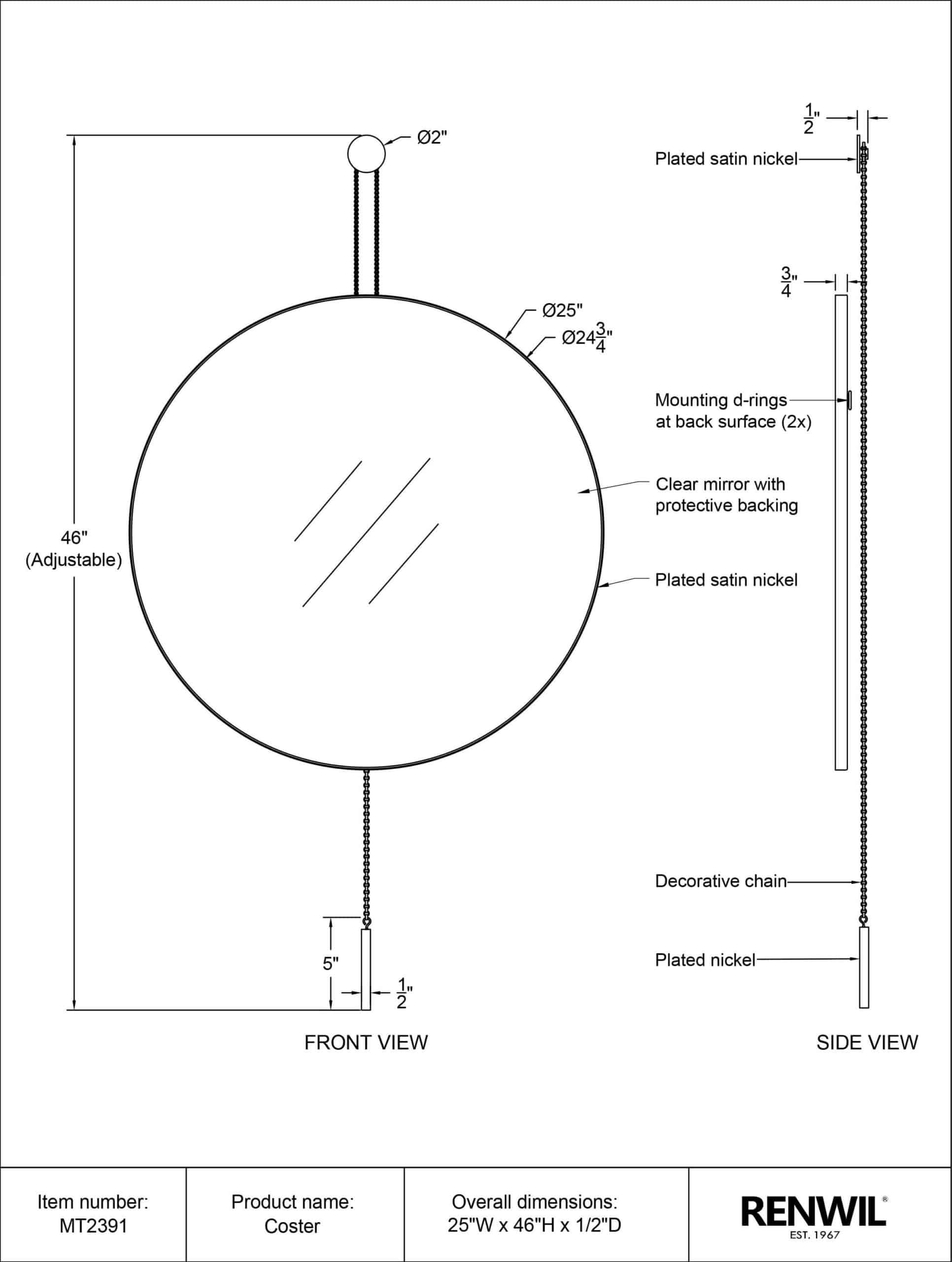 Style: MT2391 | Dimensions : 25″W X 46″H X 0.5″D