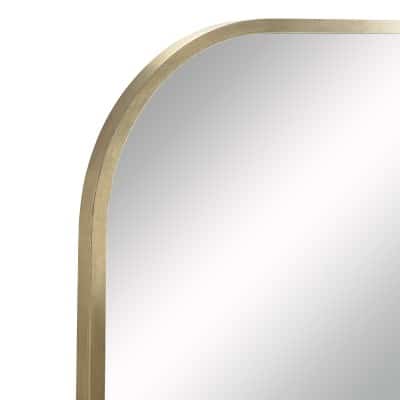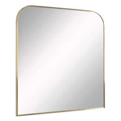 The optimal size to hang or rest above an entryway bench, sofa or dining table, this arch mirror provides homeowners with moments of reflection while brightening the space it’s set within. The sleek antique brushed brass frame gives this mirror an aesthetic that fits within mid-century modern, classic and contemporary interiors. The unique curved angles of this framed mirror are inherently charming, and this charm radiates off to the accessories and fixtures in its midst.