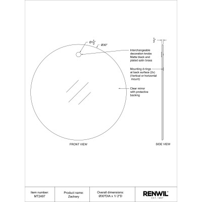 The home entryway becomes all the more efficient when this mirror enters the space. While the mirror serves as a space for reflection before coming and going, the knob provides a resting place for items to hang. Thirty inches in height and width, it brings a welcome dose of light to the interior.